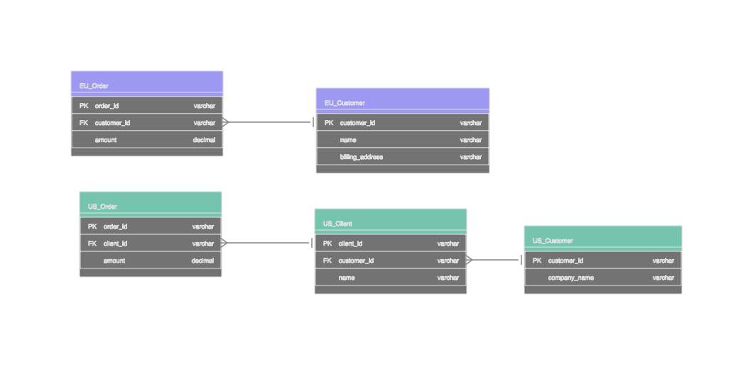 Five minutes on a call with John from US sales settles it. In the EU, a customer is an individual person with a billing relationship. In the US, a customer is a legal entity — a company that's signed a contract. The people inside that company are called clients. Same column name, completely different grain.