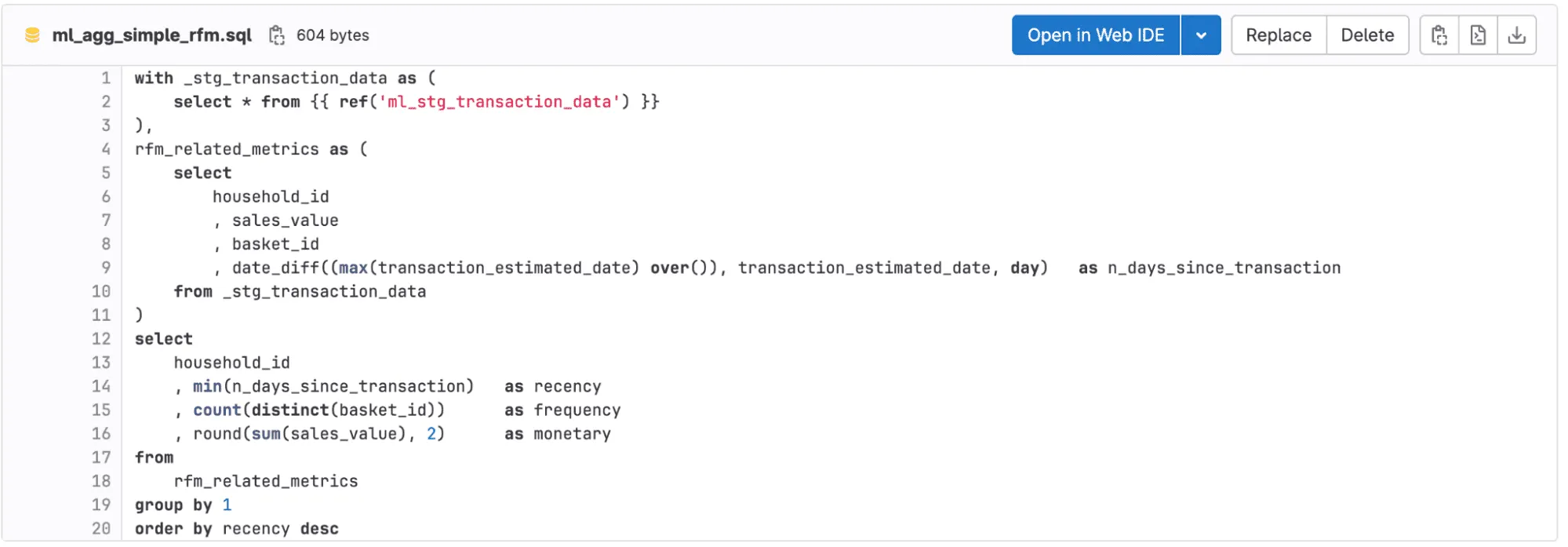 Everything’s been said so far regarding dbt’s capabilities to transform the data within a data warehouse for reporting purposes. But what if we would like to use this powerful tool for something more advanced like ML pipelines? Working on ML models usually requires not only a lot of mathematical background, but also proficiency in programming languages, e.g. Python, which means that it often takes a lot of time & money to generate business value out of advanced analytics solutions. This is not the case with BigQuery ML, where feature engineering pipelines, model training and tuning can be made within a data warehouse without the need to move the data and, what’s very convenient — using SQL only.