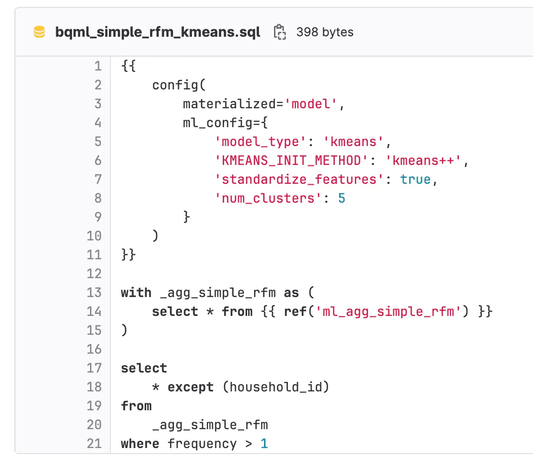In this tutorial we demonstrated how to define an end to end data pipeline using dbt and BigQuery ML. We discussed the pros and cons of such a solution. The complete step-by-step implementation of BQML was also presented in one of our posts A Step-by-Step Guide to Training a Machine Learning Model using BigQuery ML (BQML). The combination of dbt and BigQuery ML allows for the creation of machine learning models, without the need for a dedicated project or using a different language like Python. By leveraging the implemented models, it is possible to build analyses that can address more advanced business problems, such as customer segmentation. The ease of use is undoubtedly a great advantage. Model definition can be done using SQL, and by using the dbt_ml_package, the syntax familiar to dbt users will not be something new.