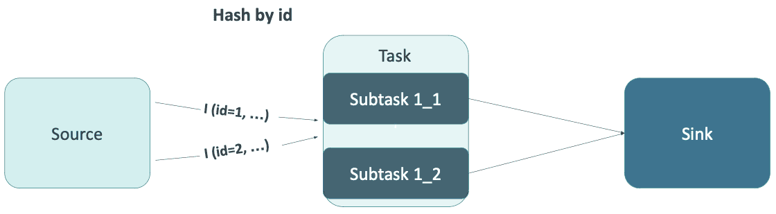 The source table produced two following insert row events: I (id=1, …) and I (id=2, …). These events were shuffled by the id field and transferred to different subtasks. What will be the order of the events in the Sink? It’s nondeterministic. Flink only preserves the order of events processed by a particular subtask. There is no synchronization or shared state between subtasks, which can be problematic for correlated events, such as updates of the same row.